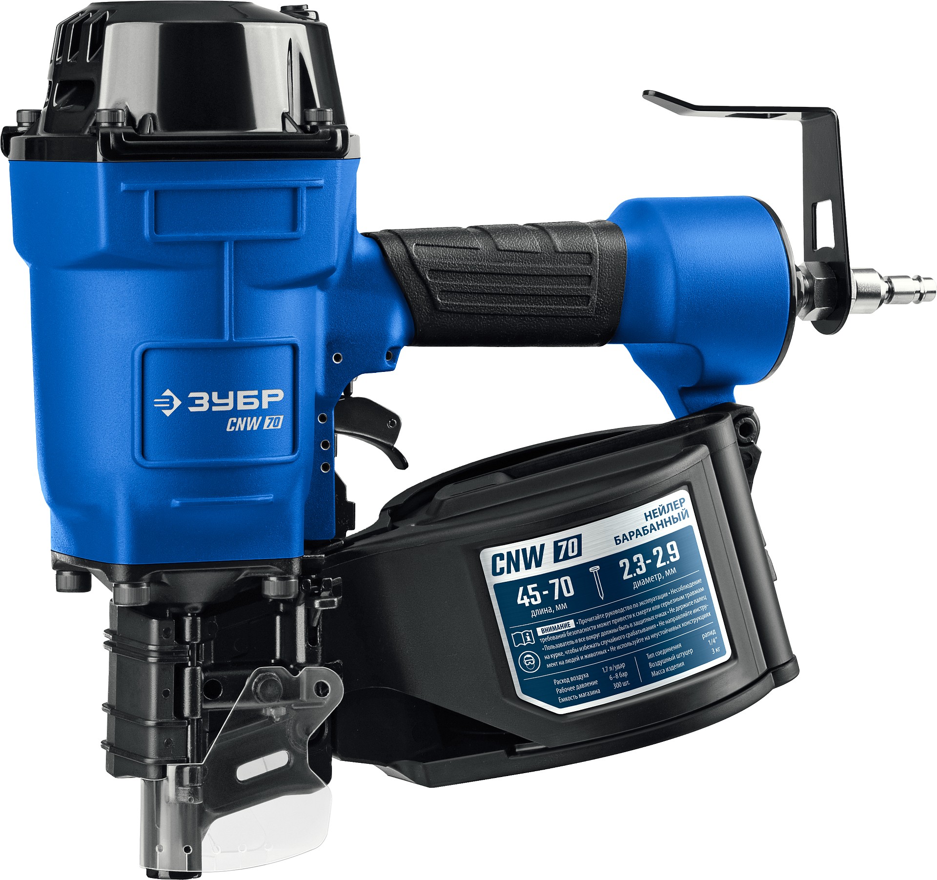 ЗУБР CNW-70, пневматический нейлер для барабанных гвоздей ЗУБР CNW (45-70 мм), Профессионал (31912)