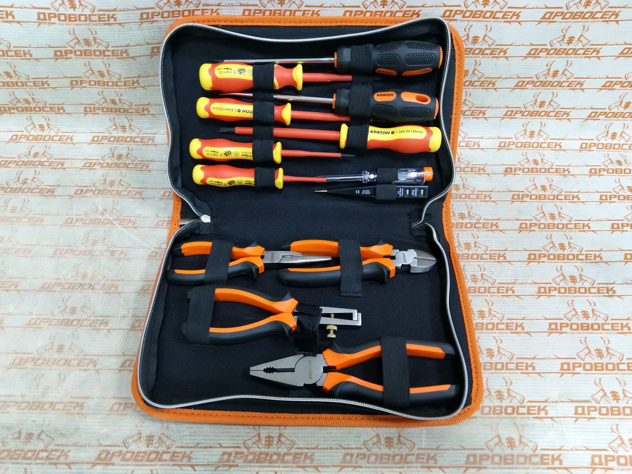 Набор Электрика №2 бренда Кратон состоит из 13 предметов. Подходит для профессионального и домашнего использования. Инструменты изготовлены из прочной высококачественной стали, которая устойчива к износу. Все составляющие упакованы в специальную сумку, что удобно для транспортировки и хранения.
