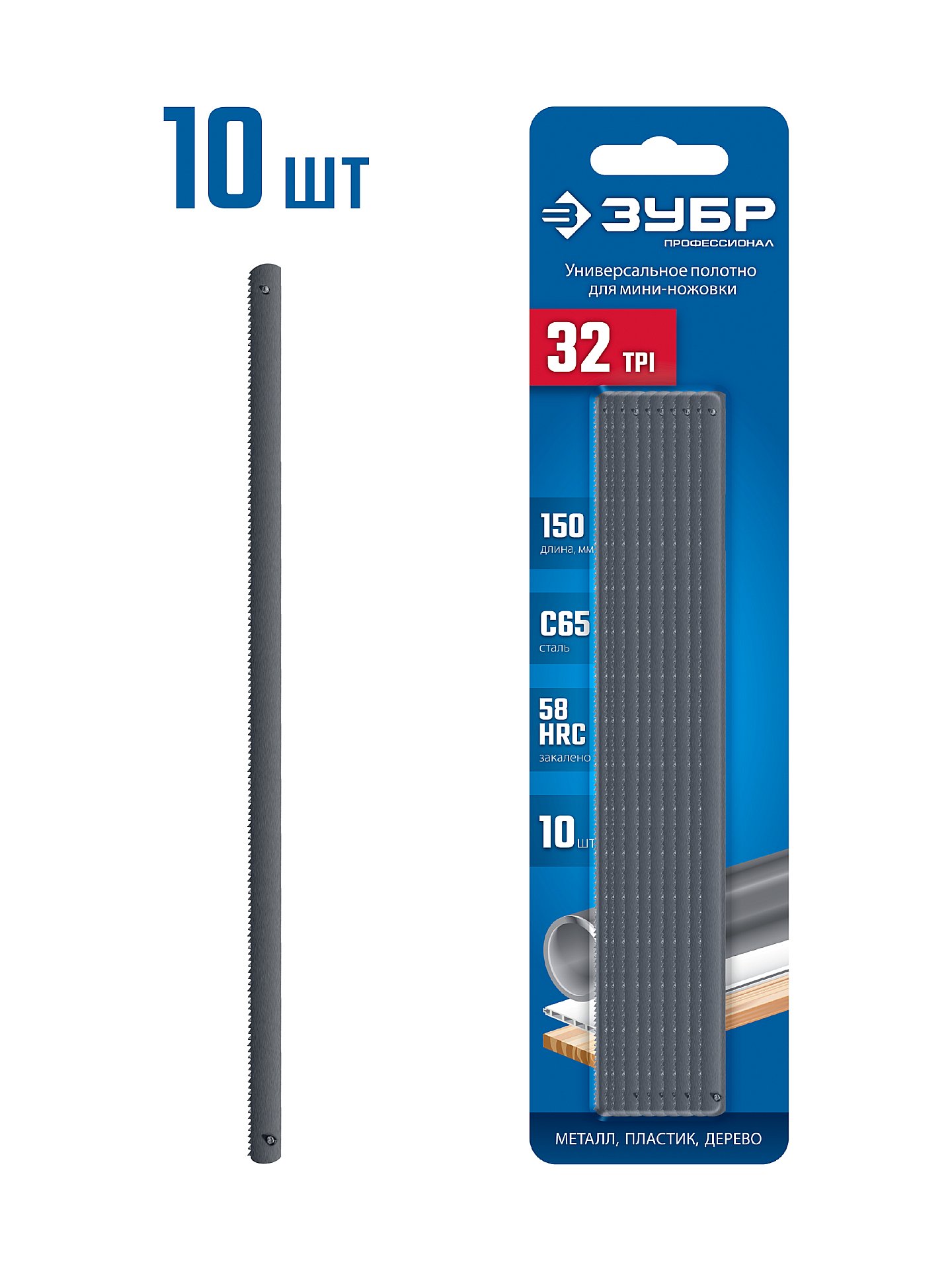 ЗУБР МИНИ 150 мм, 32TPI, 10 шт, Универсальное полотно для ножовки-мини / 1567-S10